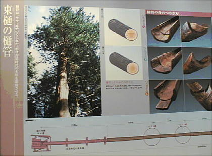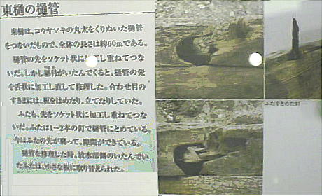 誕生時と東樋の樋管は、幸いにもコウヤマキで作られていた。また、表皮のすぐ下まで残っていたので、616年に切り倒さ