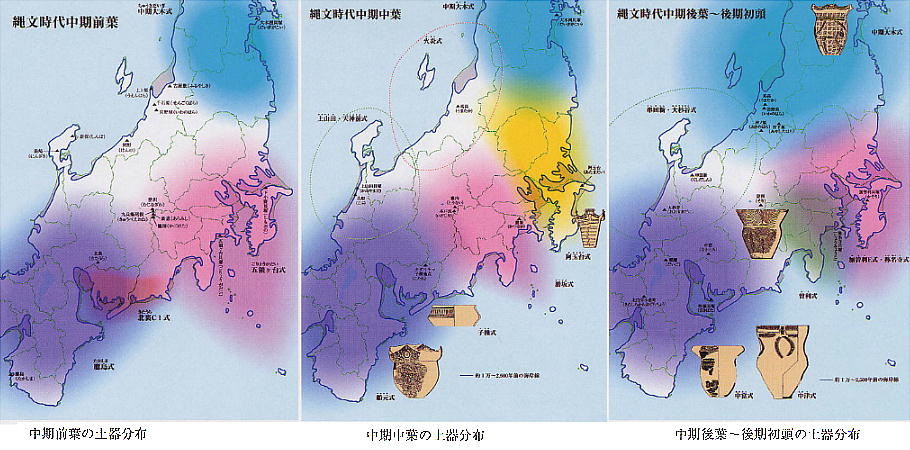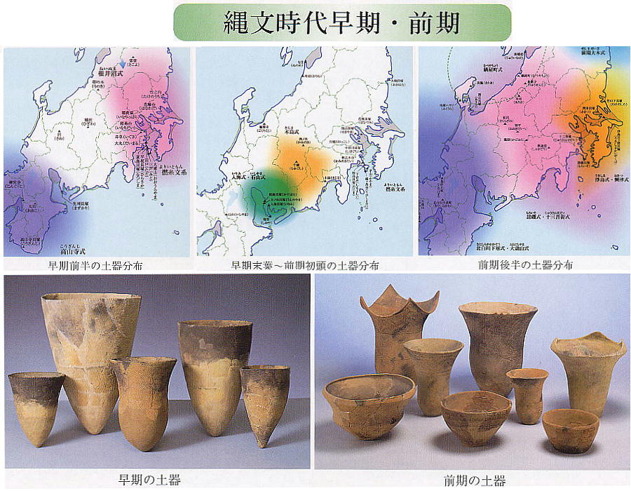 には、青森の土器などもあり、早期の終わりから前期初頭にかけては、東海地方や近畿地方の土器も混じっている。早期後半