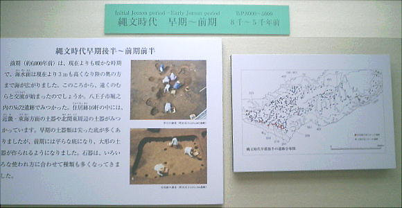 1万年から6千年前の縄文時代早期になると、多摩ニュータウンでも生活の跡が見つかるようになる。狩猟の獲物は主として