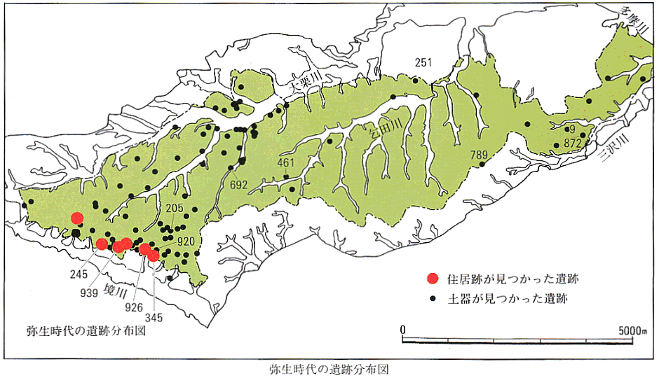 縄文晩期から弥生にかけての遺跡がほとんど無い事実は、おそらく、新しく入ってきた稲作に適した場所へ、人々が移り住