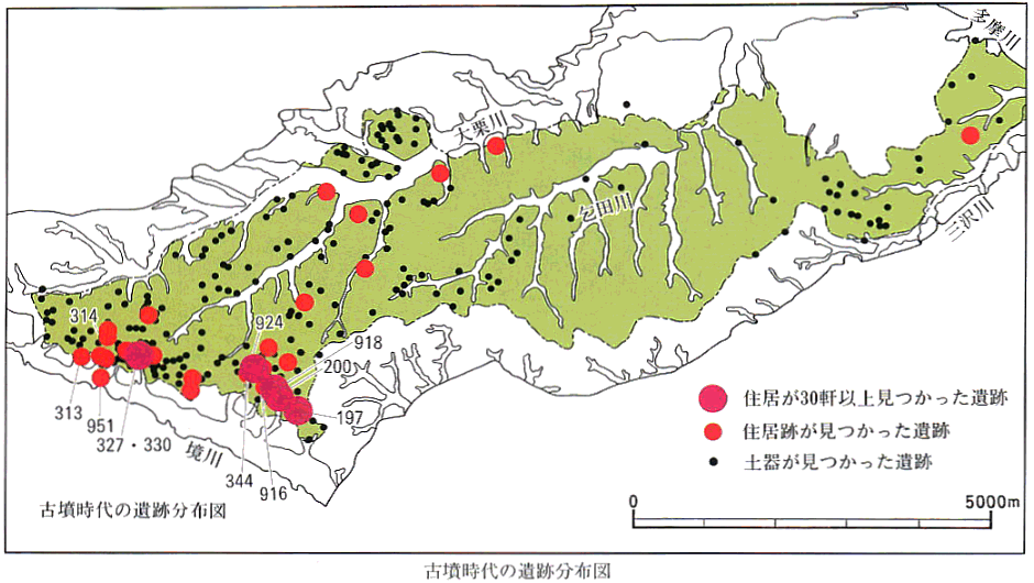 古墳時代のムラの跡は、弥生時代の遺跡と同じく町田市相原・小山地区で多数見つかり、住居跡の数は240軒以上になる。