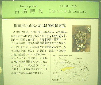 相原・小山地区の遺跡から多数見つかっている。NO.313遺跡では、都内でも最大規模の墓道を持つ横穴墓が見つかり、