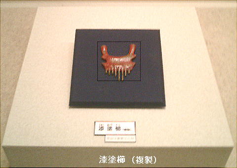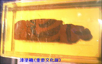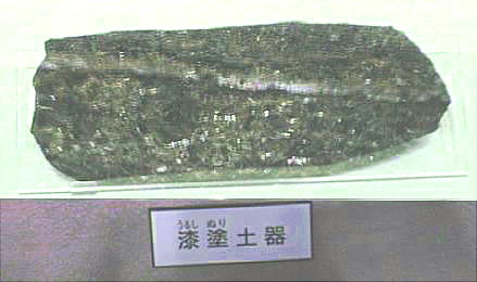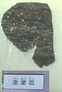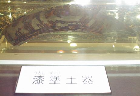 「鳥浜貝塚」のもう一つの目玉、漆塗り木製品。実物はもっときれい。デジカメはどうも色を出すのが今一だなぁ。