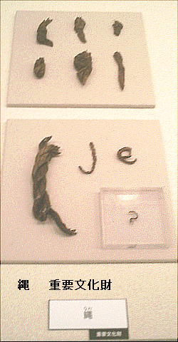 そしてこれも、この遺跡を有名にした、我が国で初めて出土した「縄」。
