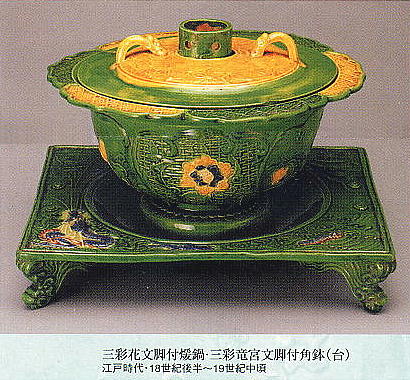 技術的には桃山時代以降、日本のやきものに影響を与え続けた中国の華南三彩(かなんさんさい)と同系列の軟質の施釉陶器