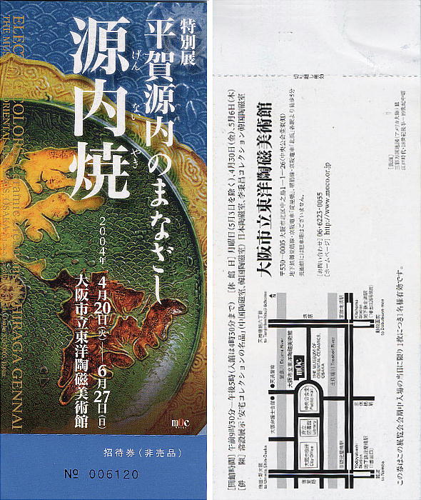 入場券を貰ったので、中之島にある大阪市立東洋陶磁美術館へ、平賀源内が四国の讃岐地方を中心に広めたという「源内