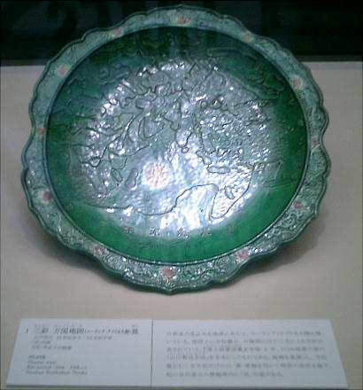 (せゆうとうき)で、緑、褐、黄などの鮮やかな釉色を特徴としている。精緻な文様はすべて型を使って表され、世界地図、