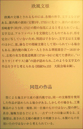 う気がしてくる。源内は陶器の輸出を目論んでいたと言うから、このハデさは、使用者として西欧人を頭に描いていたのか