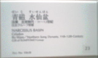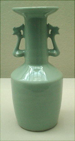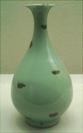 この瓶は特にその姿かたちが美しく、また青磁の釉色もひときわ優れているため飛青磁中、もっとも声値の高いものである。