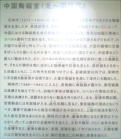 立したもので、昭和57年に開館した。館蔵品は「安宅コレクション」の中国陶磁・朝鮮陶磁を中心に、現在約1300