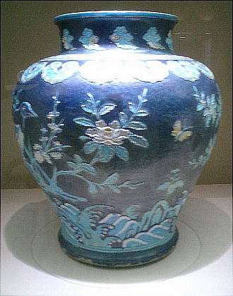 この壷は見事だった。吸い込まれるようなコバルトブルー。幾種類もに塗り分けられた青。見ていたら時を忘れる。