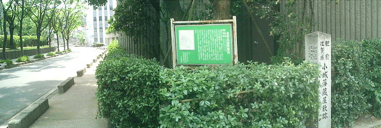 美術館を出て梅田の方へ歩き出したらすぐこの石柱があった。小城羊羹(おぎようかん)で有名な小城藩蔵屋敷跡だ。