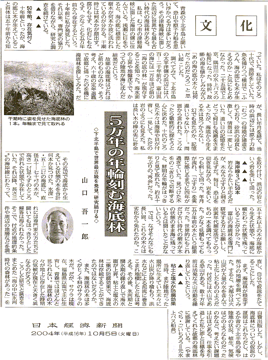 没林は、そこがかって陸地だった時代の証拠なのだ。富山県で、富山湾の魚津港改修工事の際に海底で発見