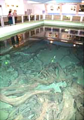 ■水中展示館 昭和27年に発掘された樹根を水中展示
