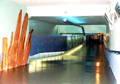館内全体がひんやりした空気に包まれている。周りが海であるし、館内も床面が「水面下1m」などの水位