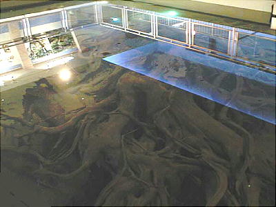 表示があるように、海の中なので空気が冷たいのだろう。地下に降りると観察窓から、樹根の様子を観察す