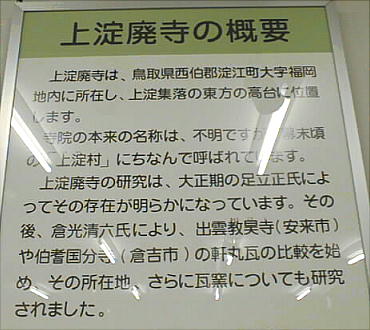淀江町は、古代出雲大社を思わせるような建物の絵画土器と、法隆寺にも匹敵する絵画伽藍の址(上淀廃寺)、そして本州