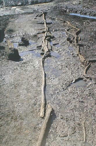 木道が発見されている。木で道の両脇を挟み、枕木や杭でその木道を支えている。西ノ谷(にしの