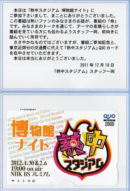 また、アンケートの結果によっては、今度NHKの番組で「博物館特集」をやるので、そうなったら東京まで収録にこれますか?」と