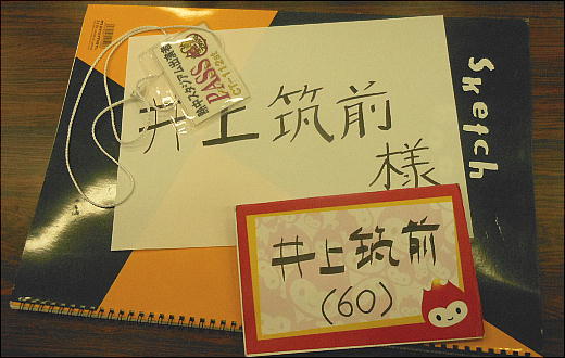 4人掛けのテーブルには、名札とスケッチブック、筆記具、屋内通行証などが置いてあって、どうやら番組ではこれらを使うらしい。