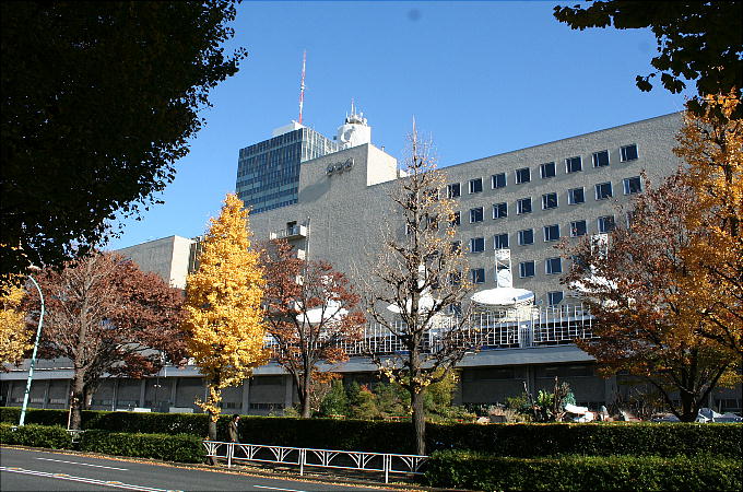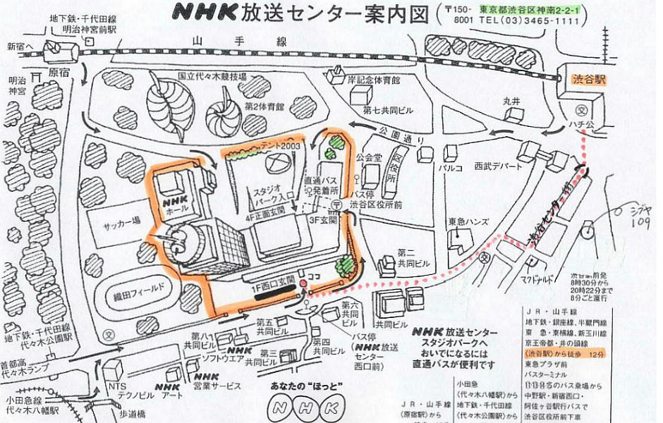 渋谷の商店街を抜けて丘の上へ登ってゆく。NHKはここらで一番高いところに建っている。