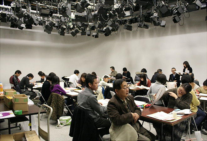 着席して司会者の到着を待つ。清水さんが私たちを写してくれる。スタジオ内は自由に撮影して良かったが、「司会者、ゲストなど、