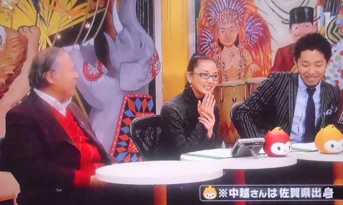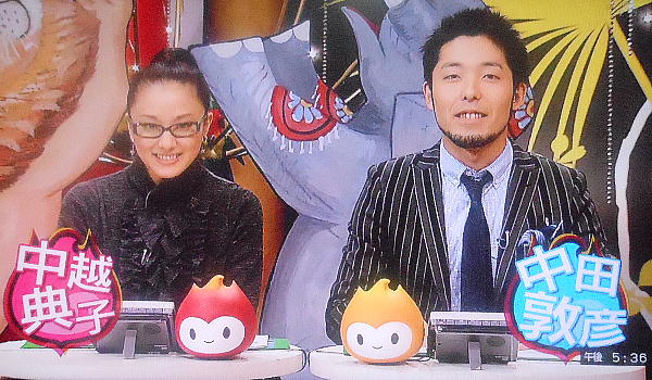 やがて司会者、ゲスト、コメンティターがお出ましになってライトや音声マイクのテストをして、本番開始。しかし、中越典子ちゃ