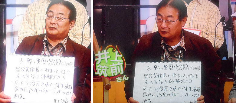 以下、放映画面からのScanです。タレントさんをデジカメでは写してないから許して頂戴、NHK様。