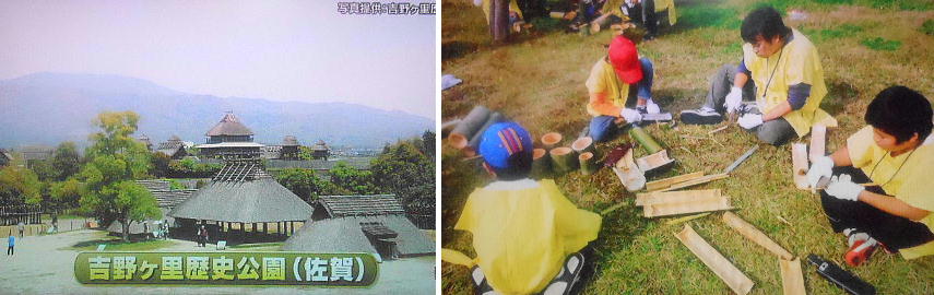 「親子で楽しめる体験型博物館」という事で、吉野ヶ里遺跡の「お泊まり体験」について話した。ここでは縄文・弥生人になって、
