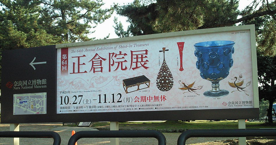 正倉院宝物は通常時、非公開である。1875年〜1880年、毎年開催された奈良博覧会の一環として、東大寺大仏殿回廊で、一部が一般に