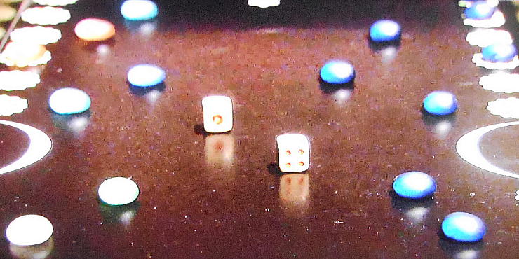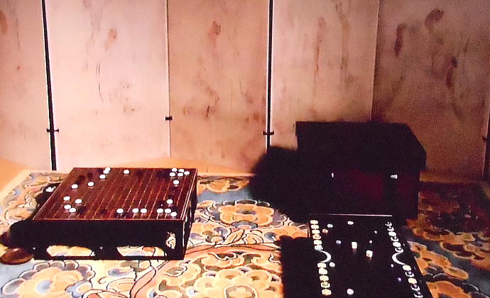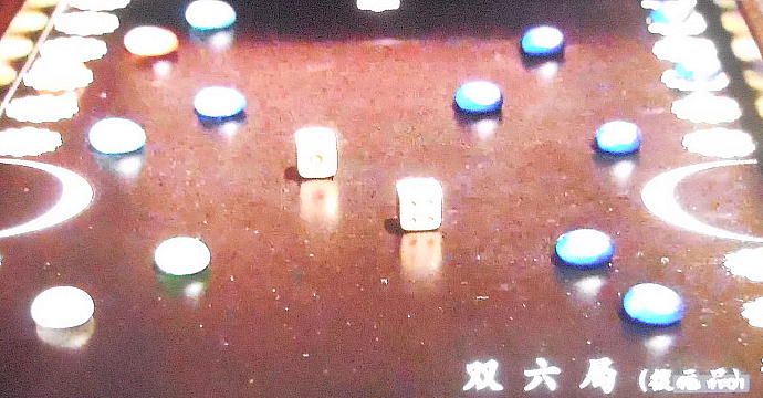 当時はこの盤の上に駒を並べ、どちらが先に相手の陣地に全部入れられるかを競うゲームだったそうな。