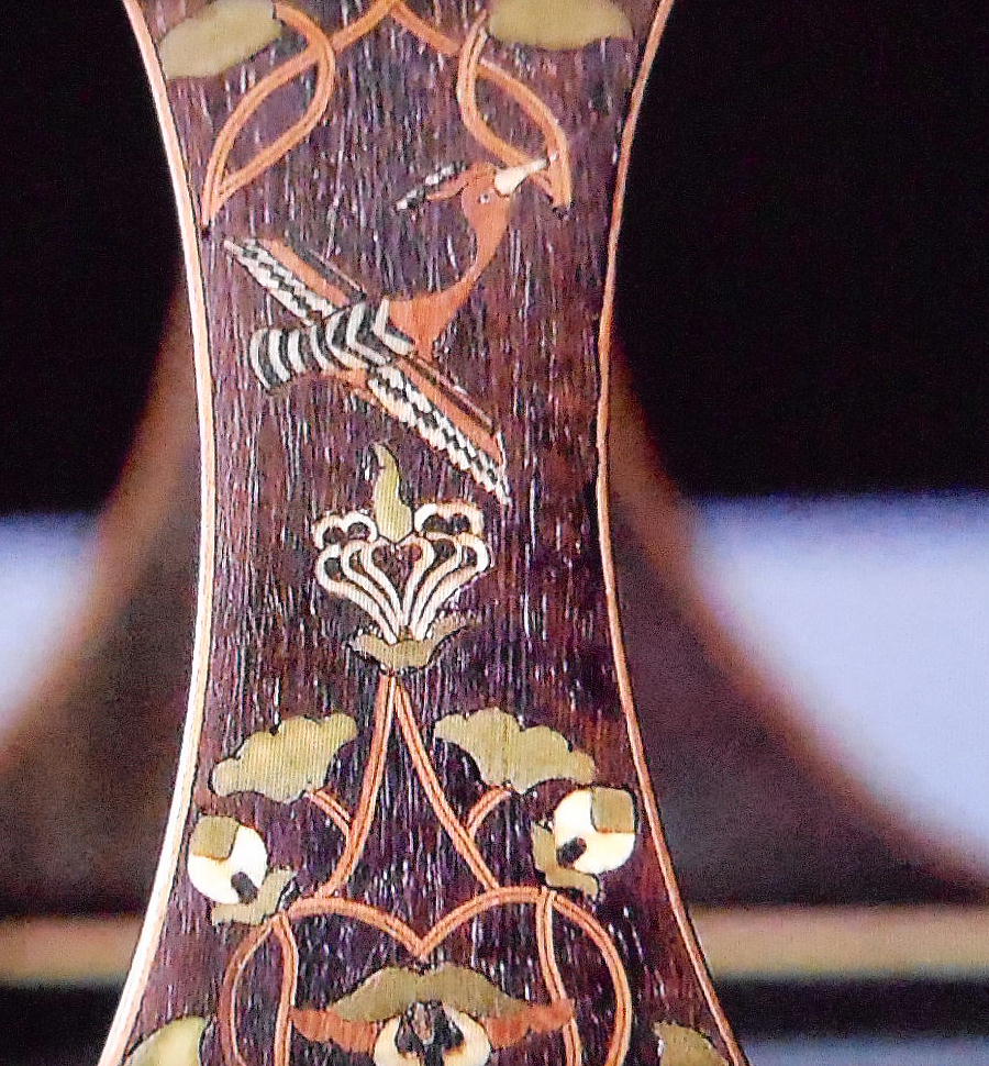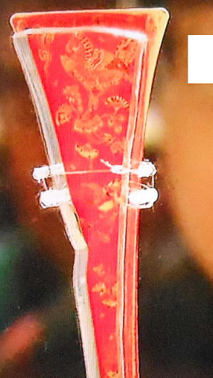 またはシオジ。槽に螺鈿・琥珀・玳瑁・金箔・黄楊木の装飾。絃門より海老尾は黄楊木。国家珍宝帳記載の楽器。古代ペルシアに起源をも