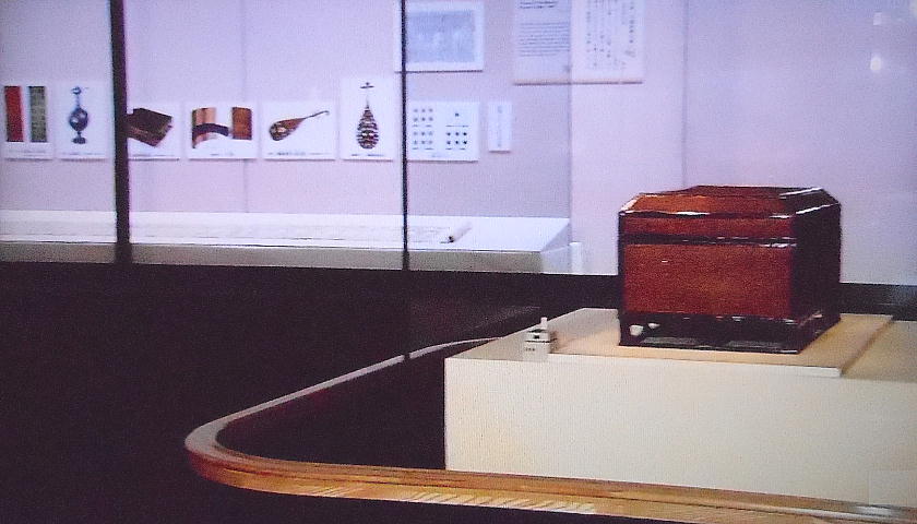 「木画紫檀双六局」は双六のゲーム盤。天皇ばかりで無く、当時の人々・貴族が、熱中して遊んだといわれる。遊びの道具に込められた、