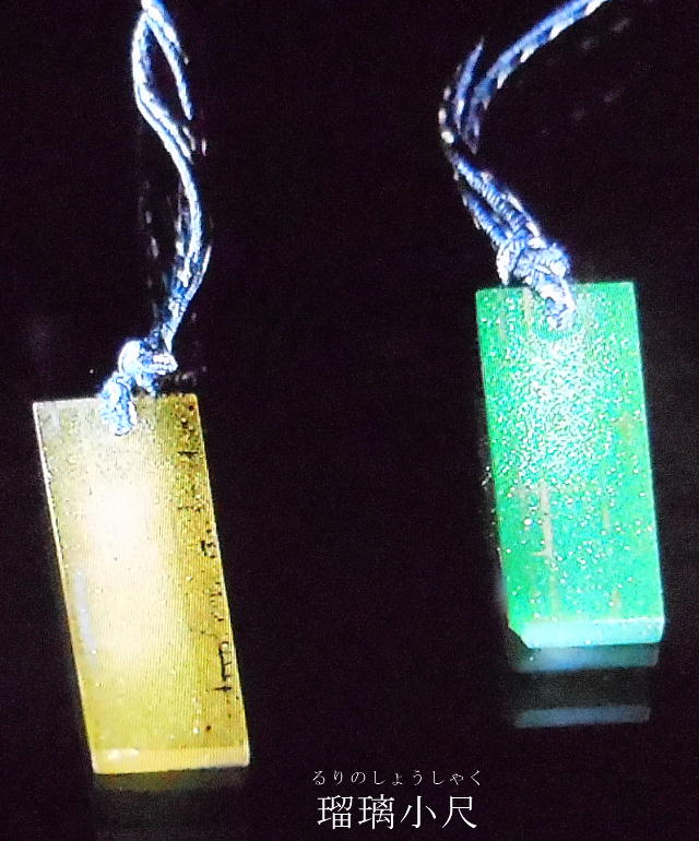 碧瑠璃小尺・黄瑠璃小尺はガラスを使ったアクセサリーと思われる。勿論尺としても使用していたはずだ。