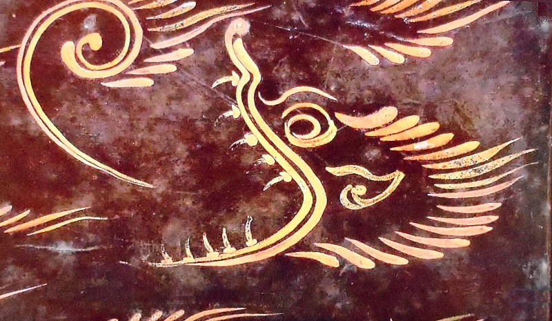 上は鳥で下は魚だが、火焔を吹いているのか、或いは食ったものを吐出しているのかもしれない。奉納品にそれはないか。魚は水の中だし。