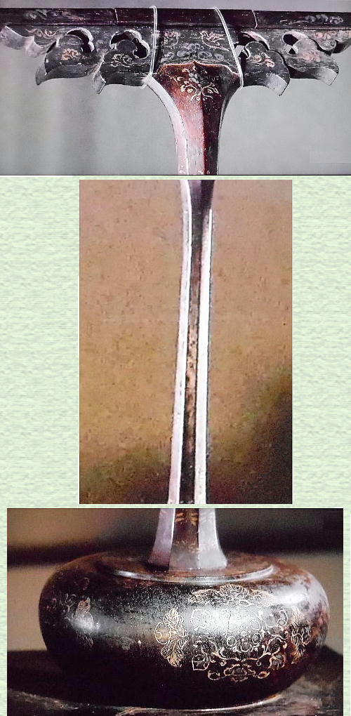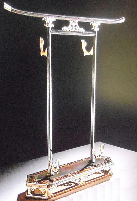いる。坏の受け皿部分の蓮弁様金具は明治時代に新しく補われたものだが、本来の受け皿は銀製鍍金のパルメット唐草文を透彫した