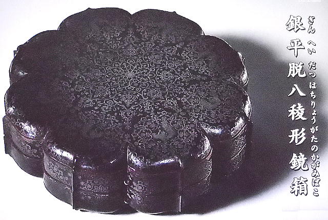 「銀平脱八稜形鏡箱」(ぎんへいだつはちりょうがたのかがみばこ)は、漆による高度な装飾技法を駆使した逸品で、八角形の鏡を