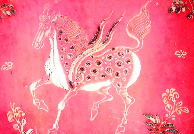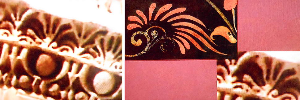 この文様もシルクロードをわたってきた。文様のオリジナルは、紀元前から存在するペルシアの都「エフェソス」に建っていた神殿に