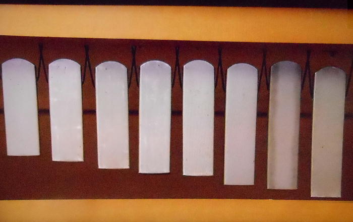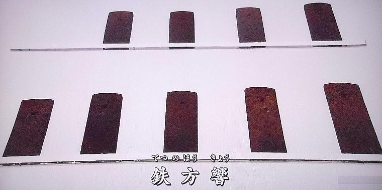 「鉄方響」も鉄製で、長さ10・4センチ〜14・9センチ、幅4・5センチ〜5・0センチ、厚さ0・4センチ〜0・6センチ。