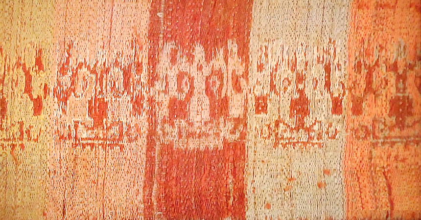 細やかな技巧のルーツは、どれもシルクロードに技術やデザインの由来をもつとされ、トルファンからも同様のものが出土している。
