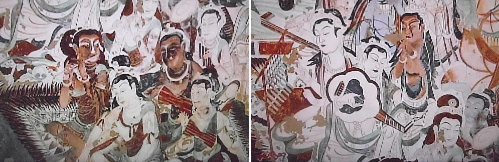 「螺鈿紫檀琵琶」は、極楽浄土で天女に演奏されている姿が、敦煌の洞窟壁画に残っている。今年は、ほかにもシルクロードゆかりの