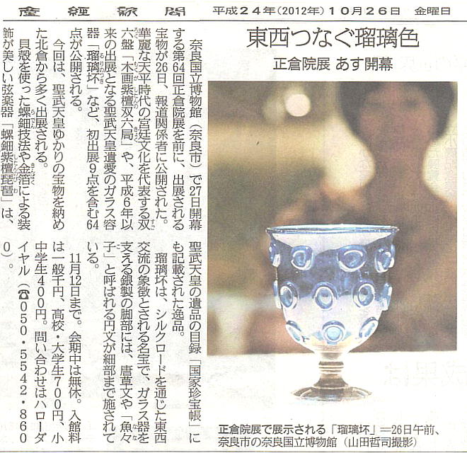 当時日本にはガラス製造の技術は無かったので、これが渡来のものであることは明らかだ。シルクロードを渡ってきたともてはやされ