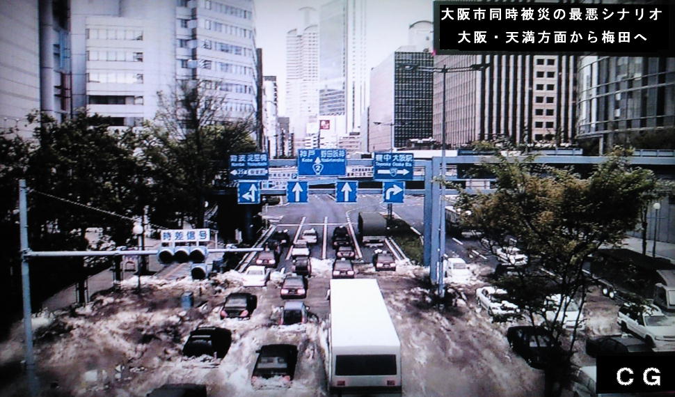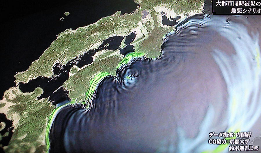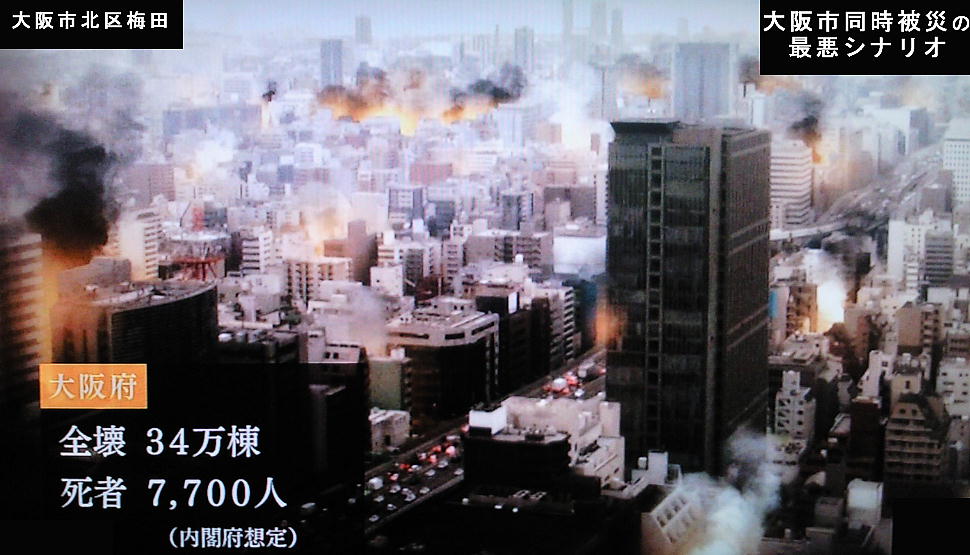 南海沖トラフ地震が発生したら、名古屋・大阪がどうなるかというNHKのシュミレーション番組から。