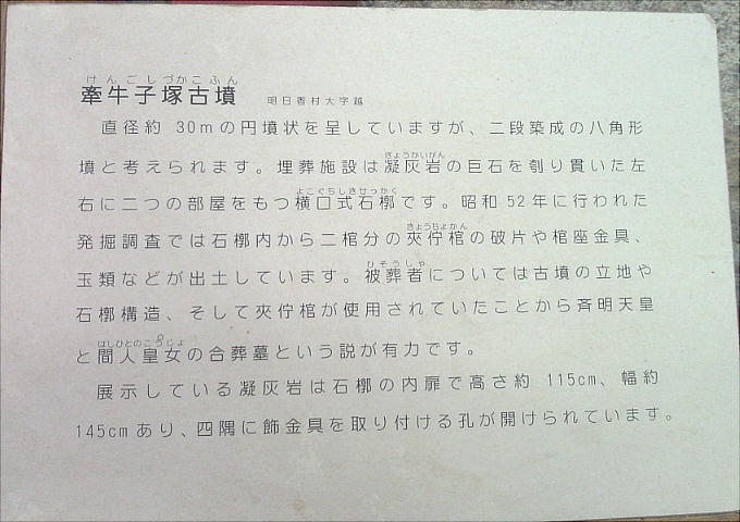 牽牛子塚古墳は明日香村大字越に所在する終末期古墳で、別名「御前塚」「あさがお塚古墳」と呼ばれている。昭和53年には環境