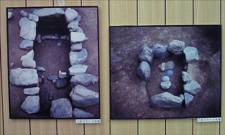ばれている盛り土で高くなっている。1970年と1973年に行われた発掘調査では、川原石を組んで作った溝や、小池を