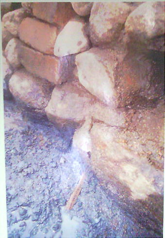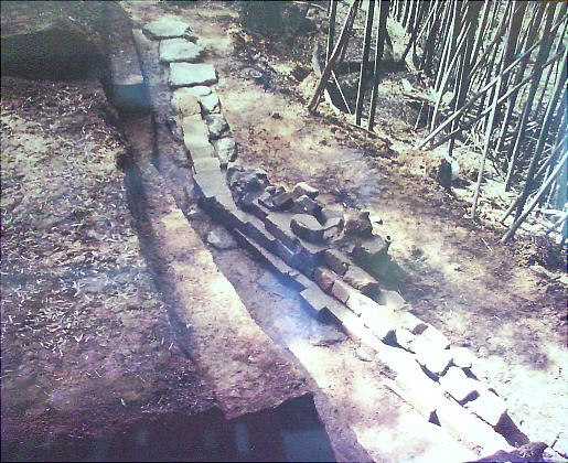 上のようにに、石垣状遺構を復元してある。このような石段が、この山の斜面に何段にも連なっていた。日本書紀の「斉明天