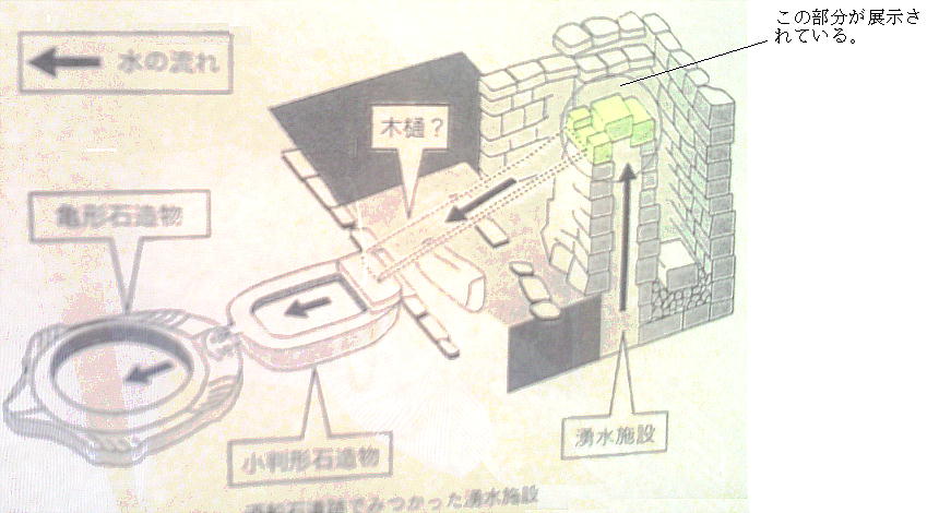 で、換言すれば立体的な庭園を飾る設備である」(直木孝次郎)、というのが一般的。酒船石の丘の北の麓から出土した亀形