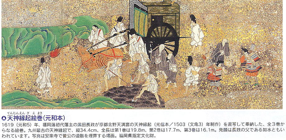 されるようになった。菅原道真の墓の上に建てられたのが太宰府天満宮で、現在の本殿(重要文化財)は天正19年(1591)の