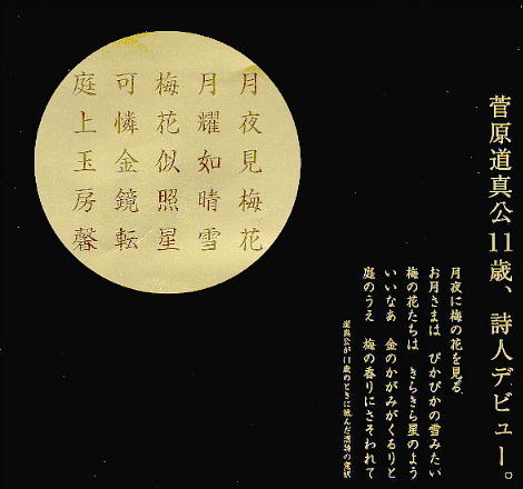 に当たる。 道真は学問だけでなく、武芸にも優れ、若い頃都良香亭で矢を百発百中射ったという伝承もある。しかし、この伝承