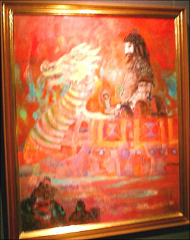 宝物殿の入り口を入るとすぐ右手に、我が敬愛する青沼茜雲先生の「天空を行く磐井」の絵が飾ってある。